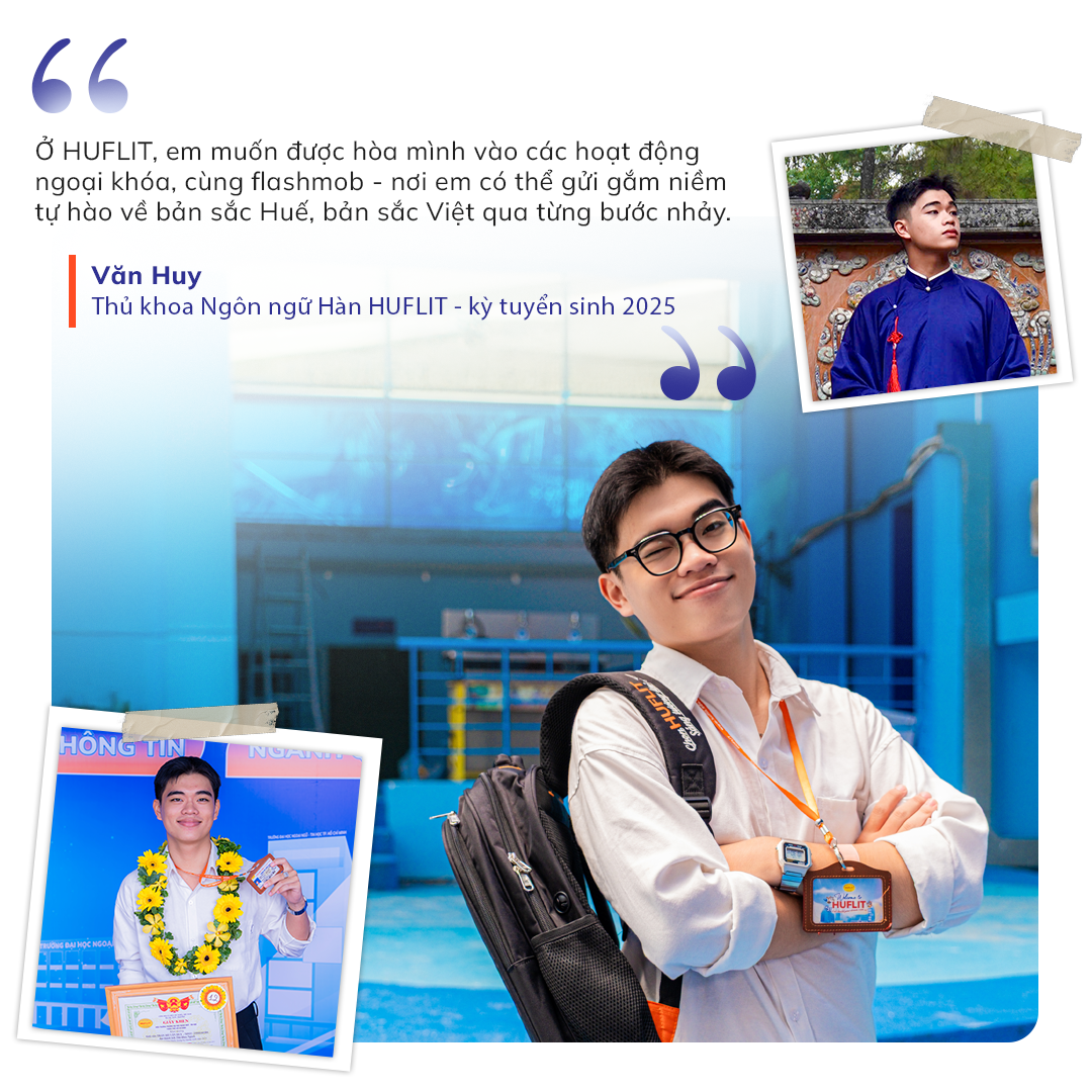 From Hue – the land of heritage – comes freshman Van Huy, HUFLIT’s 2025 Korean Language Top Scorer, who brings with him a deep love for his hometown and a strong desire to preserve cultural identity in the fast pace of modern life.
