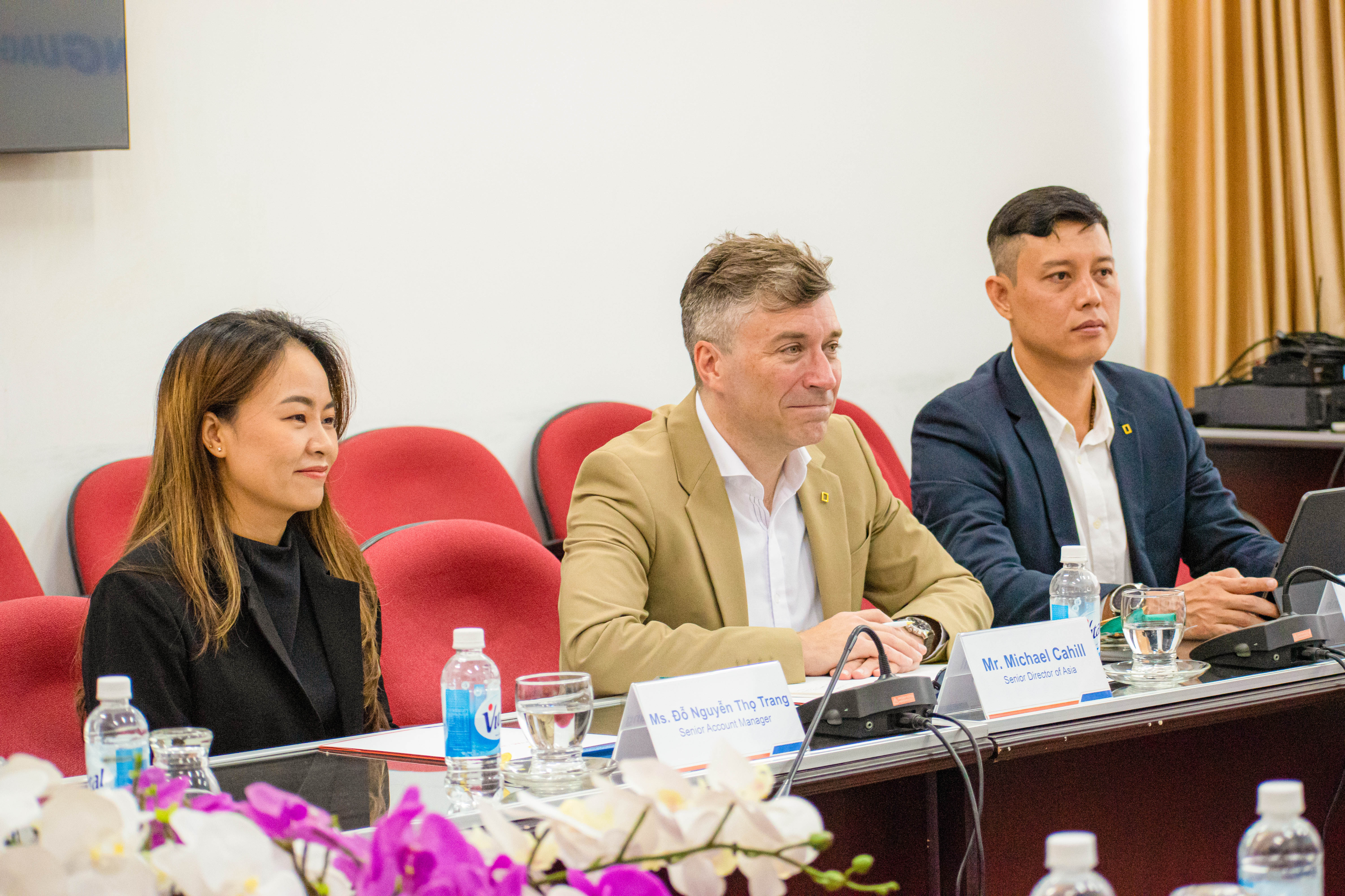 Attending the ceremony, representing National Geographic Learning were Mr. Michael Cahill – Senior Director of NGL Asia Pacific, Ms. Nguyen Thi Cam Van – Higher Education Consultant of National Geographic Learning in Vietnam, and Ms. Ha Do Nguyen Tho Trang – Senior Business Director of NGL in Vietnam. On the HUFLIT side were Dr. Nguyen Anh Tuan – University President, Ms. Nguyen Thi Thieu – Head of the Department of International Relations, and Ms. Tran My Uyen – Vice Dean of the Faculty of Foreign Languages.