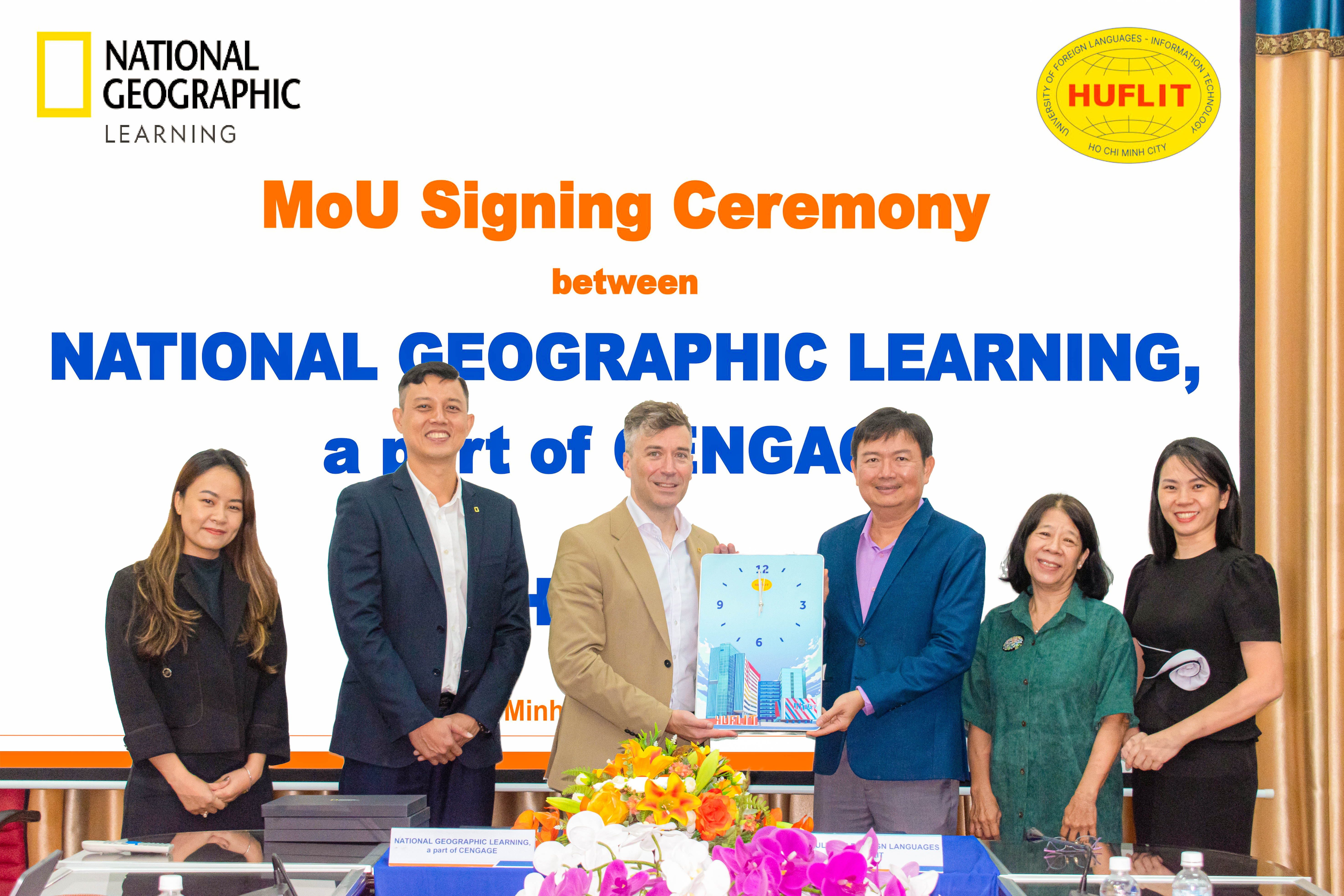 The Faculty of Foreign Languages at Ho Chi Minh City University of Foreign Languages and Information Technology (HUFLIT) held a signing ceremony for a Memorandum of Understanding (MOU) between the Faculty of Foreign Languages and National Geographic Learning, a division of CENGAGE.