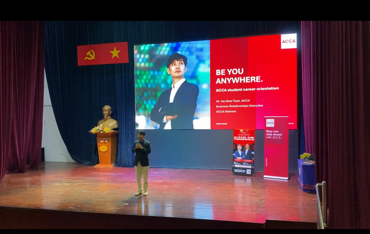 Tại báo cáo chuyên đề, sinh viên có cơ hội lắng nghe những chia sẻ sâu sắc từ anh Hà Nhật Tuấn – Hội viên ACCA, chuyên gia tài chính với hơn 12 năm kinh nghiệm trong các lĩnh vực phân tích tài chính, phân tích dự án đầu tư, kiểm soát nội bộ và kiểm toán độc lập. Hiện nay, anh Tuấn đang phụ trách mảng Giáo dục đào tạo tại ACCA Việt Nam.