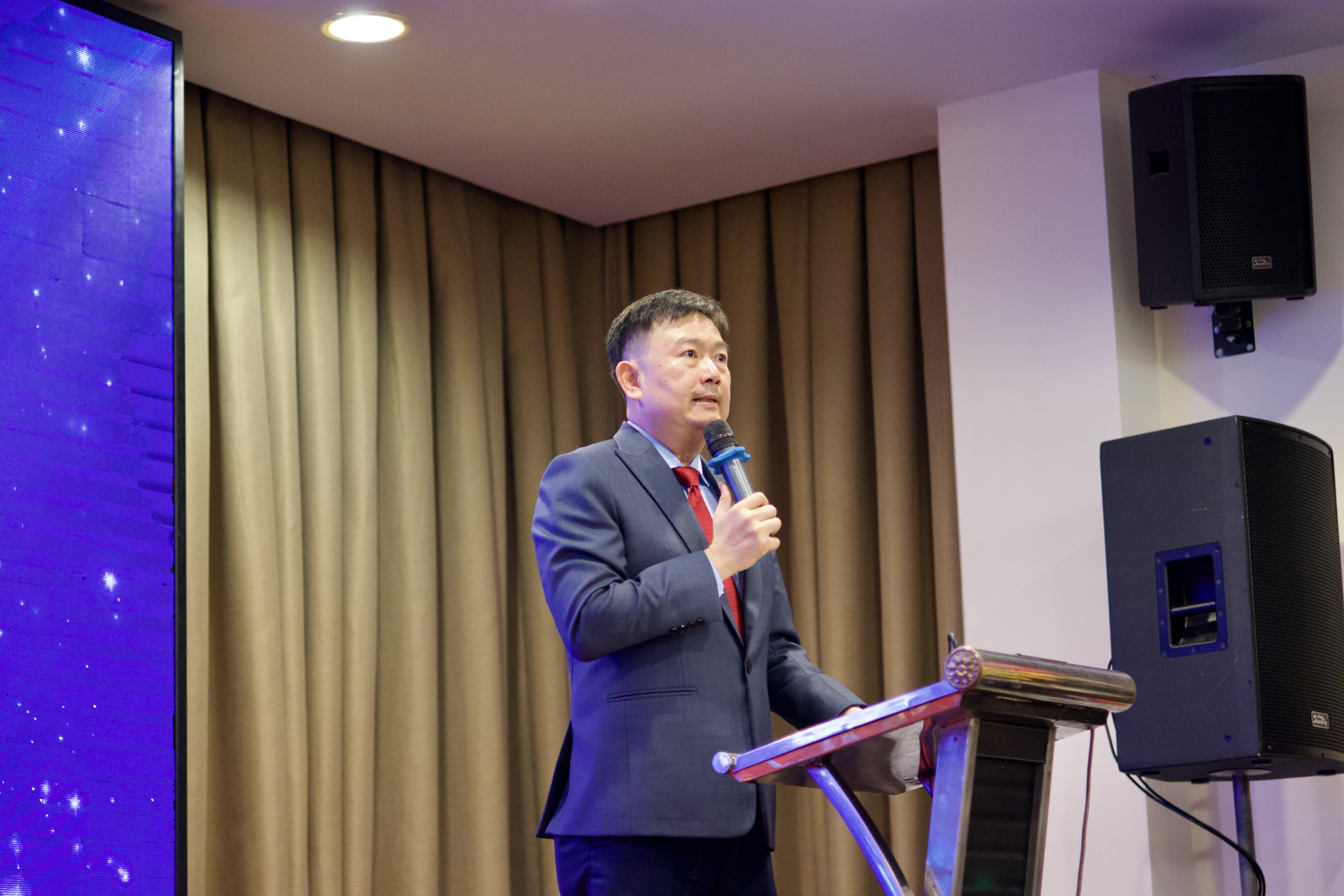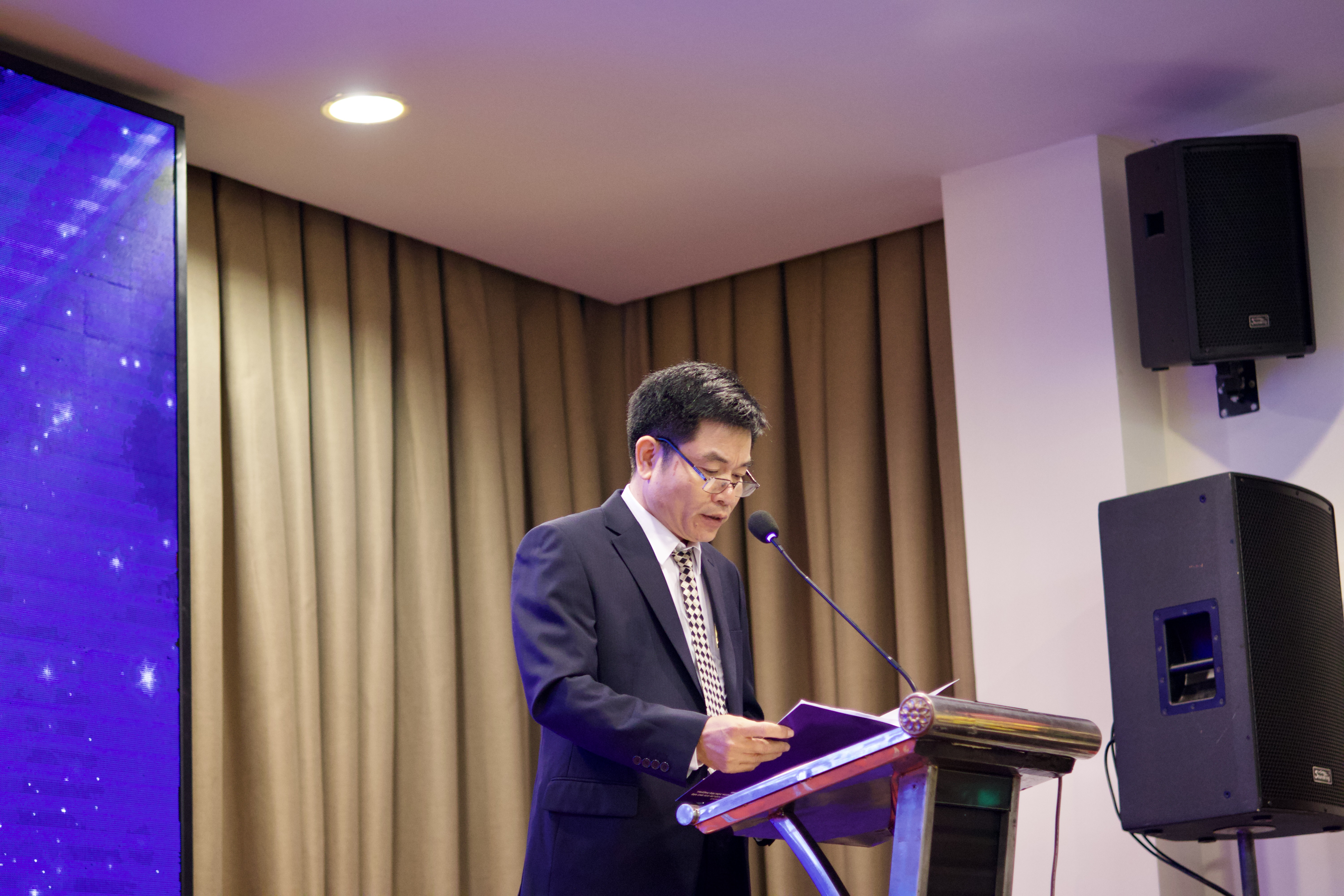 Tiến sĩ Nguyễn Anh Tuấn - Bí thư Đảng uỷ, Hiệu trưởng Nhà Trường phát biểu tại buổi lễ