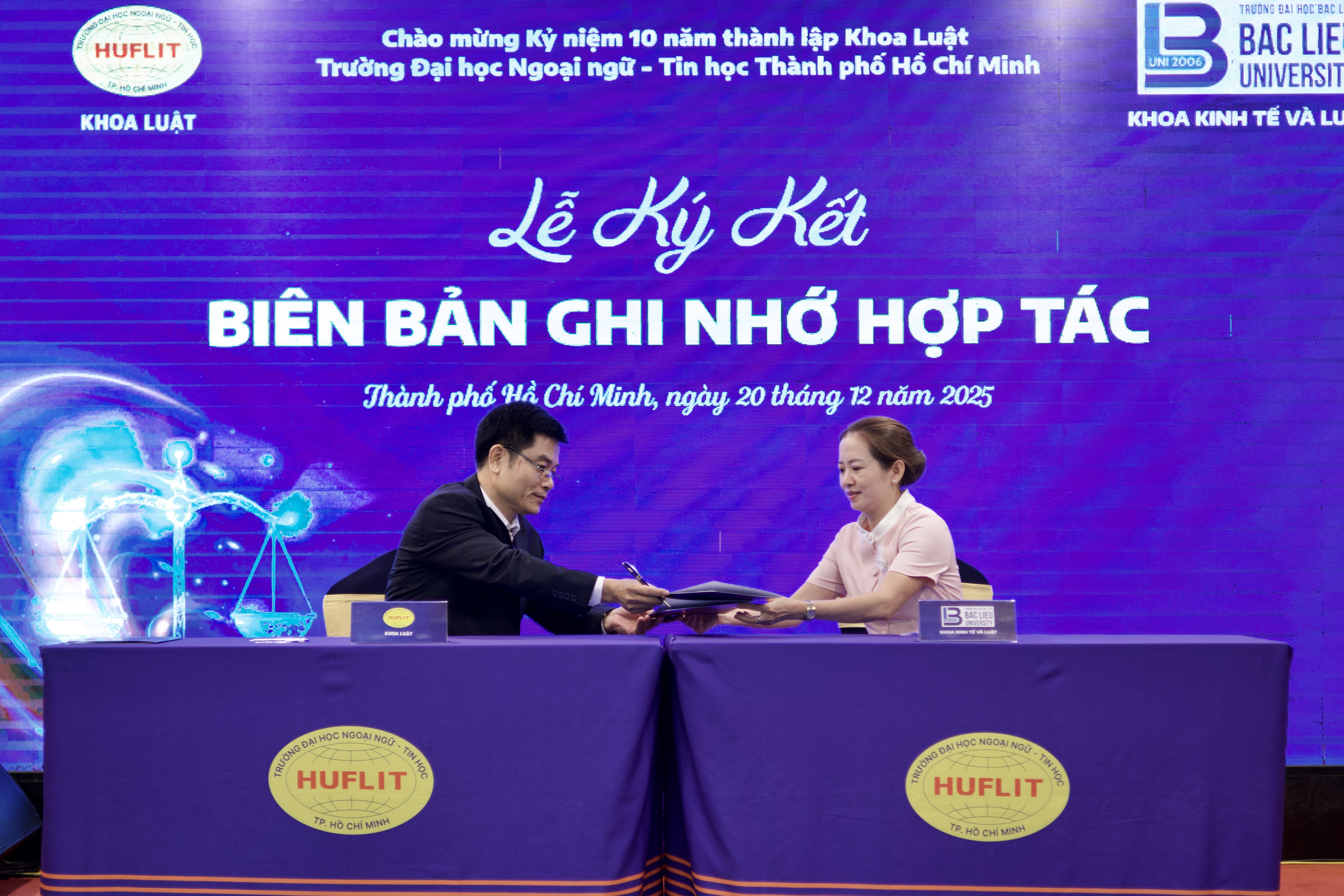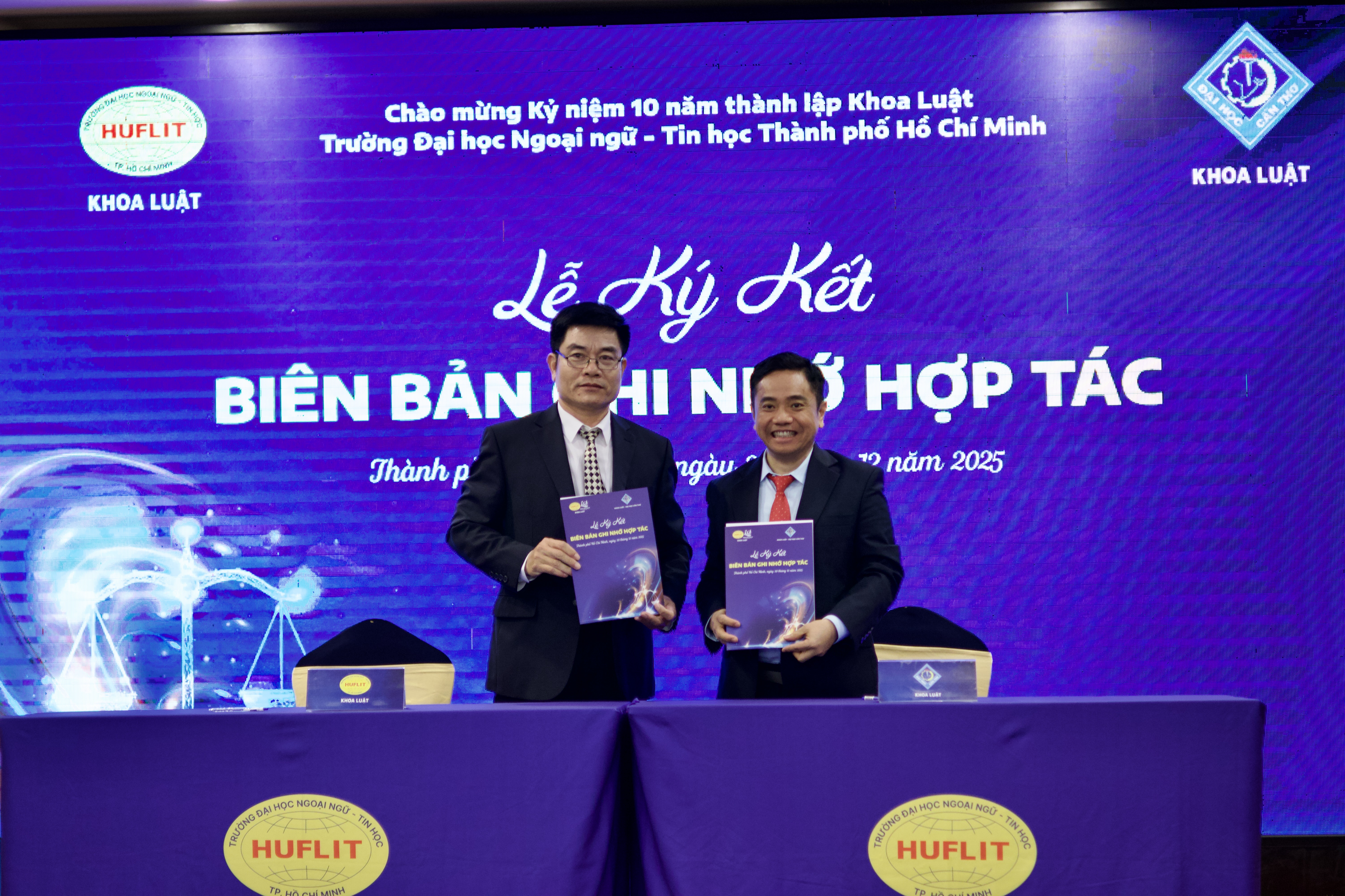 Tại buổi lễ, Khoa Luật HUFLIT đã ký kết biên bản ghi nhớ với Khoa Luật Đại học Cần Thơ, Khoa Kinh tế và Luật Trường Đại học Bạc Liêu, Chương trình Đào tạo Luật – Trường Luật và Quản lý Trường Đại học Thủ Dầu Một, Toà án Nhân dân Khu vực 8, Bảo hiểm Xã hội Thành phố Hồ Chí Minh, Tổng Công ty Thương mại Kỹ thuật và Đầu tư – PETEC, Công ty Tư vấn và Kiểm toán ICMA, Câu lạc bộ Doanh nhân Quảng Trị miền Nam dưới sự chứng kiến rất trang trọng của tất các khách mời tham dự.