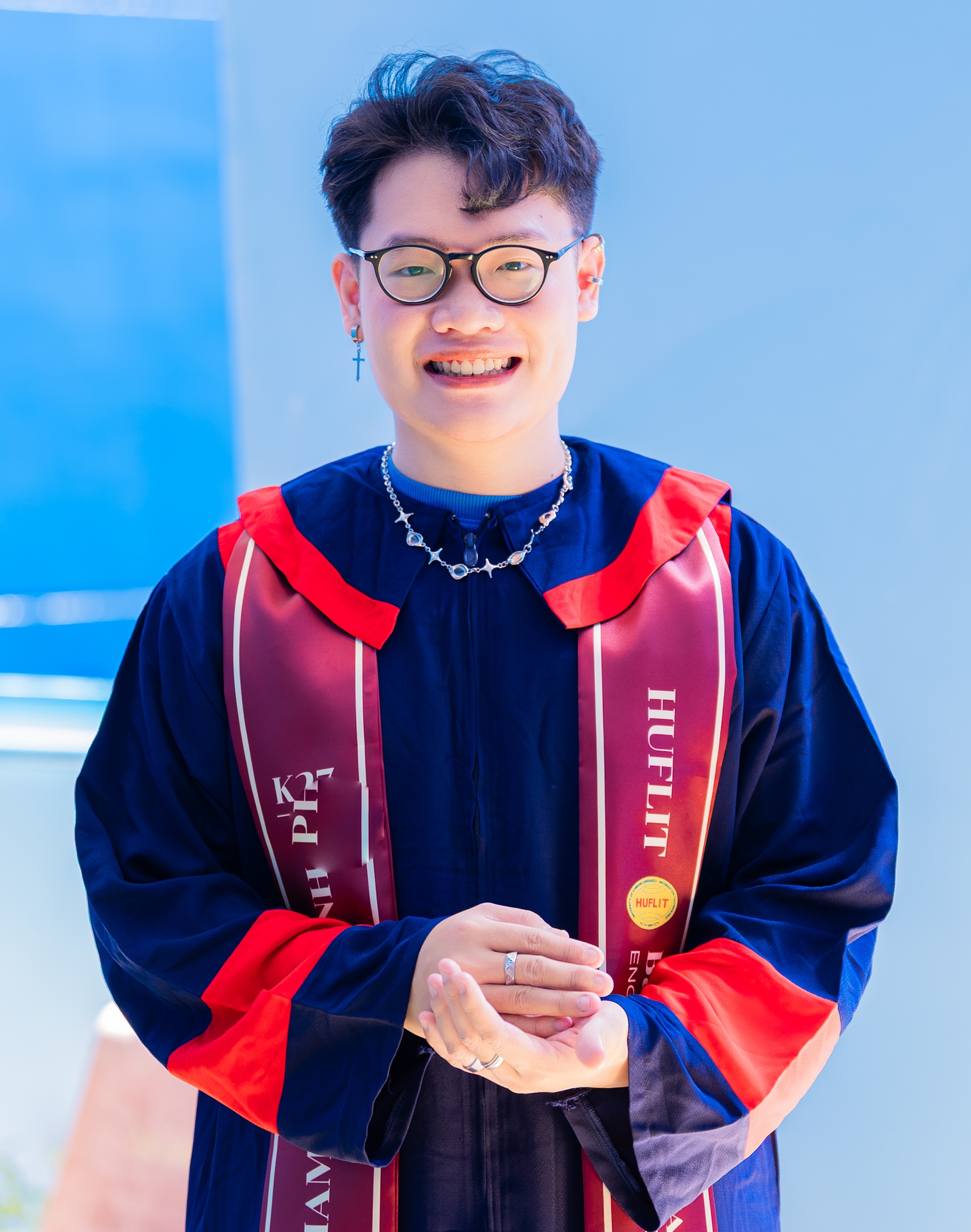 Bạn Công Minh, Tân cử nhân ngành Ngôn ngữ Anh, Khoa Ngoại ngữ, chia sẻ: “Điều khiến tôi tự hào nhất về HUFLIT chính là các thầy cô – những người không chỉ dạy cho chúng tôi kiến thức, mà còn truyền cho chúng tôi tinh thần, năng lượng tích cực và ngọn lửa đam mê mỗi khi đứng trên bục giảng”.