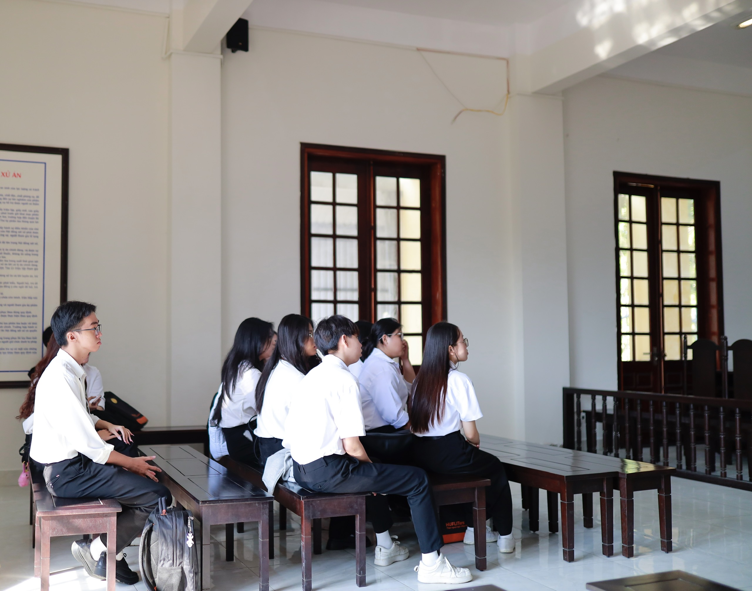 Tại đây, sinh viên được tiếp cận trực tiếp hồ sơ các vụ án như Dân sự, Hình sự, Lao động, Hôn nhân & Gia đình. Được trực tiếp tham gia các phiên toà xét xử để lắng nghe và quan sát từng diễn biến, thủ tục tại phiên xử để từ đó sinh viên có cơ hội kết nối kiến thức từ giảng đường thành trải nghiệm nghề nghiệp sinh động. Các bạn còn được học hỏi và lắng nghe chia sẻ câu chuyện nghề từ các Thẩm phán giàu kinh nghiệm.