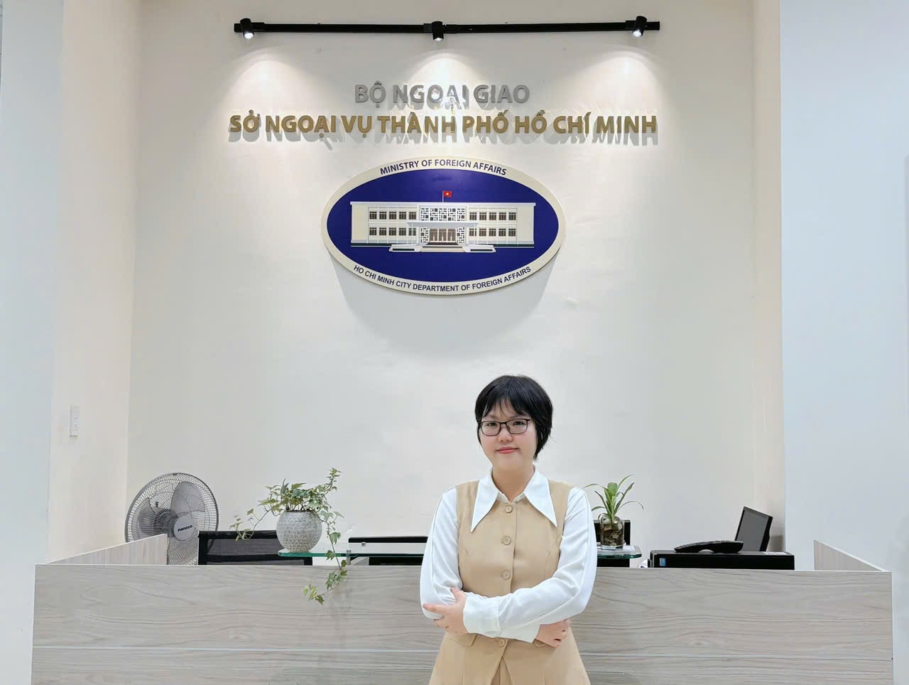 Mai Trinh chia sẻ: “Em luôn hoàn thành các công việc như đón tiếp đoàn đại biểu quốc tế, thực hiện nghiệp vụ đối ngoại, soạn thảo văn bản hành chính một cách chỉn chu và chuyên nghiệp. Nhờ vào những trải nghiệm và bài học thực tiễn trên giảng đường, em đã tự tin để nắm bắt những cơ hội quý báu trong công việc suốt thời gian em làm việc tại Sở.”