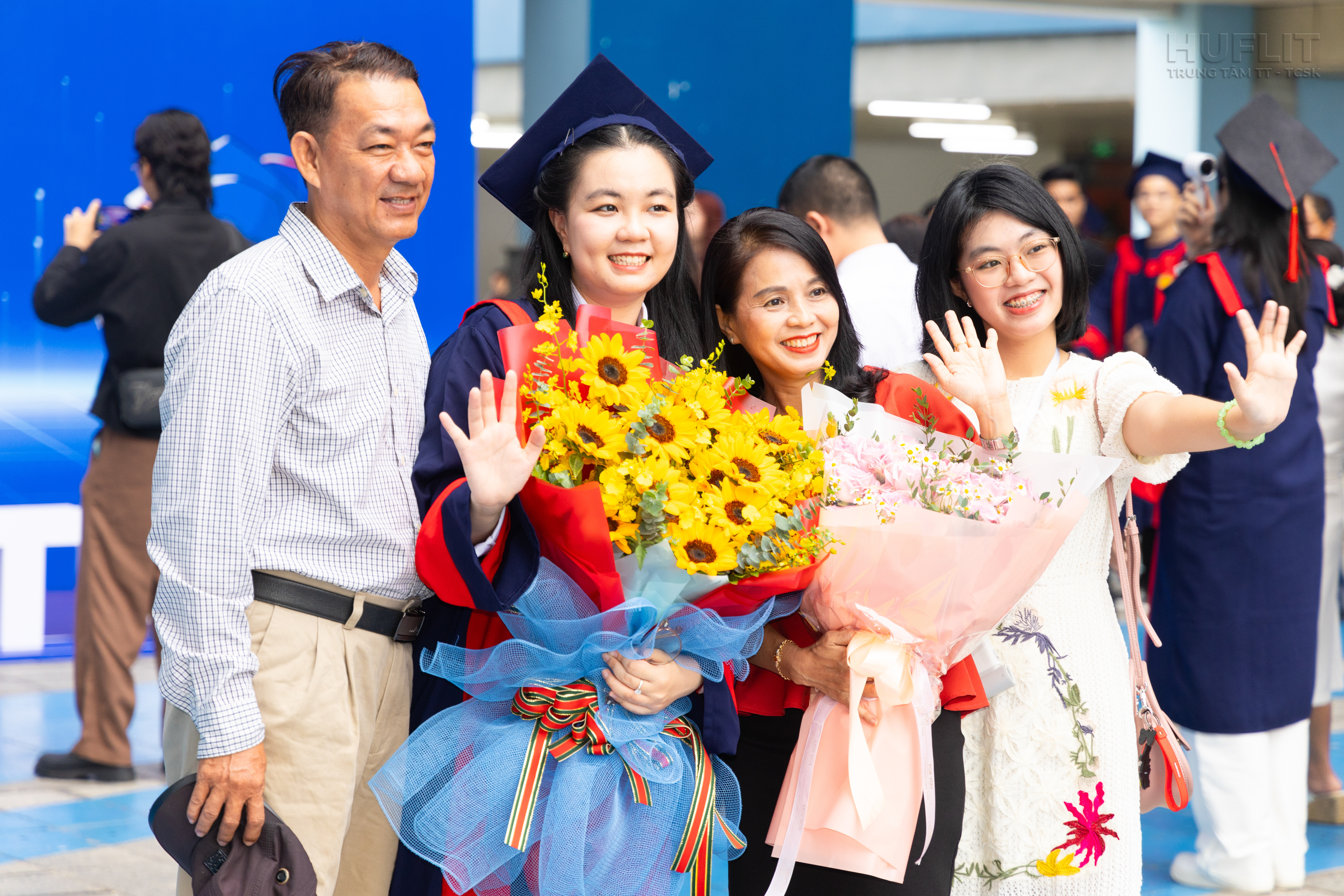 - Người thân tham dự sự kiện (KHÔNG VÀO HỘI TRƯỜNG) sẽ được Nhà trường bố trí ngồi xem qua màn hình tại các phòng chức năng Lầu 12 khu A cơ sở Hóc Môn.